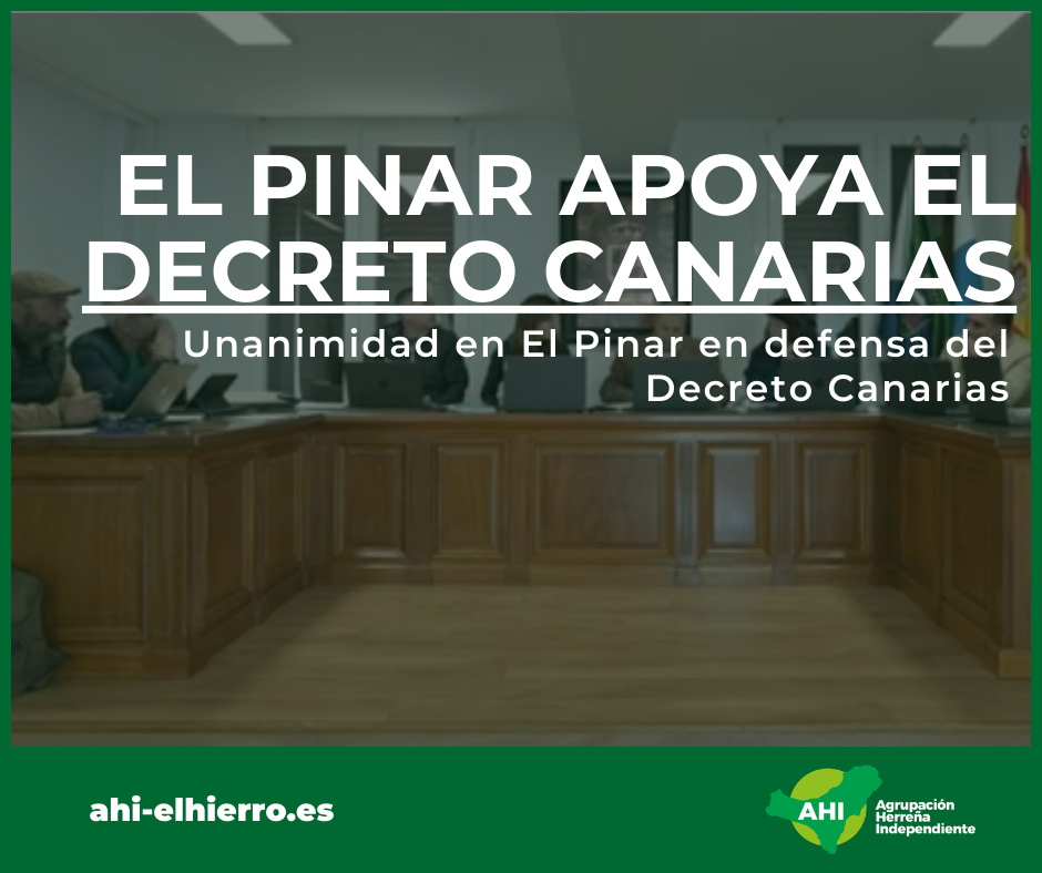 El Ayuntamiento de El Pinar aprobó en sesión plenaria del 12 de marzo el apoyo al Decreto Canarias por unanimidad en un pleno solicitado por los concejales Rubén Acosta (AHI), Giovanni González, Misel Álvarez y Francisco González (no adscritos).