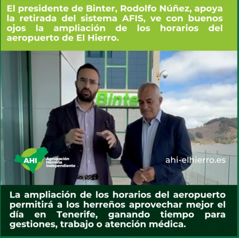 En estos casi dos años de legislatura, desde la Agrupación Herreña Independiente (AHI) valoramos de forma muy positiva el nivel de inversión que el Gobierno de Canarias está destinando a nuestra isla. Con obras ya en ejecución y otras en fase de planificación, podemos hablar de un compromiso claro con el presente y el futuro de El Hierro. Este impulso no solo mejora infraestructuras clave, sino que fortalece sectores esenciales como la agricultura, la sanidad, la educación, la vivienda y el desarrollo portuario.